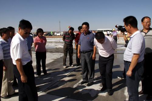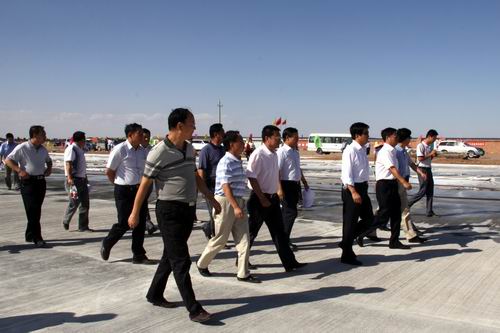 8月21日,由喬新山局長率領(lǐng)的民航西北管理局工作檢查組一行蒞臨金昌機(jī)場飛行區(qū)施工現(xiàn)場檢查指導(dǎo)工作。在飛行區(qū)停機(jī)坪建設(shè)工地,在了解到公司金昌機(jī)場項(xiàng)目部僅用了二十五個(gè)晝夜完成了總面積2.65萬平方米停機(jī)坪道面工程的情況后,對大家的辛勤勞動(dòng)給予了充分肯定,并鼓勵(lì)廣大建設(shè)者繼續(xù)鼓足干勁、克服困難,發(fā)揚(yáng)求真務(wù)實(shí)、艱苦奮斗的作風(fēng),確保工程按期完工。