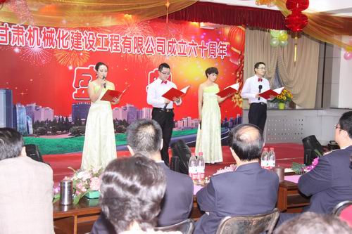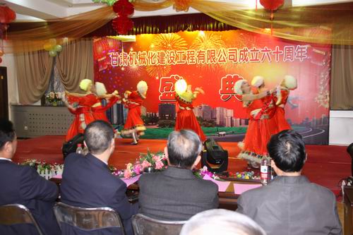 2013年3月22日下午兩點(diǎn)十分,甘肅機(jī)械化建設(shè)工程有限公司成立六十周年慶典大會(huì)在公司二樓大會(huì)議室舉行。公司領(lǐng)導(dǎo)、部分退休老領(lǐng)導(dǎo)、機(jī)關(guān)全體員工、各基層單位先進(jìn)個(gè)人及代表出席大會(huì)。大會(huì)分兩個(gè)階段進(jìn)行,公司黨委書(shū)記胡德生同志主持大會(huì)。大會(huì)第一階段,公司董事長(zhǎng)陳想蕃先生向大會(huì)作慶典致辭,黨委書(shū)記胡德生同志作了重要講話。大會(huì)第二階段為公司文藝匯演,匯演共十二個(gè)節(jié)目,公司領(lǐng)導(dǎo)及員工歡聚一堂,表演精彩紛呈,現(xiàn)場(chǎng)氣氛非常熱烈,大會(huì)持續(xù)了近兩個(gè)小時(shí)。