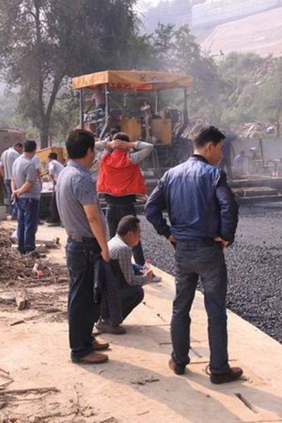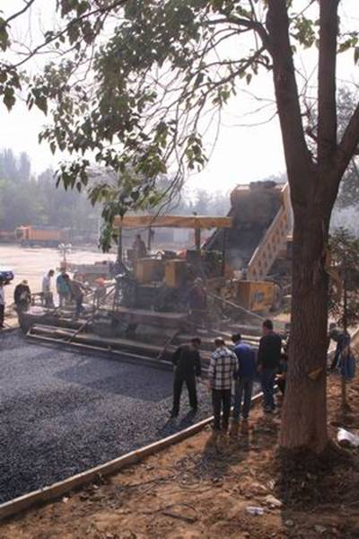 圖1—2為攤鋪機械正在跑道上進行鋪設作業(yè)的場景