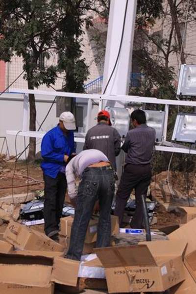 圖4為工人們進行明光裝飾的場景
