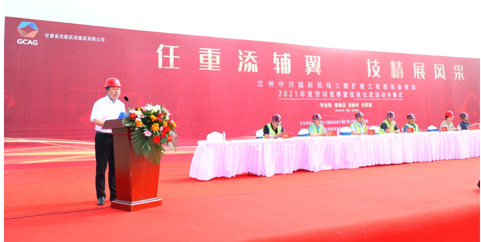 7月27日上午,由蘭州中川國(guó)際機(jī)場(chǎng)三期擴(kuò)建工程現(xiàn)場(chǎng)指揮部主辦,我司與西安西北民航項(xiàng)目管理有限公司承辦,為期兩天的蘭州中川國(guó)際機(jī)場(chǎng)三期擴(kuò)建工程2021年度“勞動(dòng)競(jìng)賽曁技能比武”活動(dòng)順利開(kāi)幕。蒞臨開(kāi)幕式的領(lǐng)導(dǎo)有蘭州市蘭州新區(qū)黨群部秦副部長(zhǎng)、蘭州市西固區(qū)總工會(huì)楊主席、蘭州中川國(guó)際機(jī)場(chǎng)三期擴(kuò)建工程現(xiàn)場(chǎng)指揮部黨委書(shū)記、指揮長(zhǎng),黨委副書(shū)記、常務(wù)副指揮長(zhǎng)等領(lǐng)導(dǎo),以及我司黨委書(shū)記、副總經(jīng)理和來(lái)自8家參賽單位的領(lǐng)導(dǎo)和參賽選手。