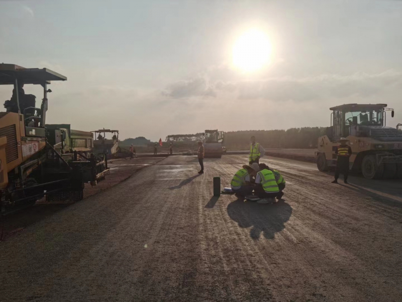 為確保試驗段攤鋪設備工作高質、高效進行,項目部統(tǒng)一部署,各部門相互配合,認真進行施工前各項準備工作,提前對有關人員進行安全培訓和技術交底。施工現(xiàn)場井然有序,項目負責人嚴格把控運輸、攤鋪、碾壓、檢測等各施工環(huán)節(jié),保證施工質量與安全,同時對試驗段標高、壓實度、平整度和厚度等各項指標進行實時檢測并記錄,確保各項指標符合技術規(guī)范要求,并確定水穩(wěn)層松鋪系數(shù)、壓路機最佳碾壓遍數(shù)及速率,最終達到預期試驗效果。
