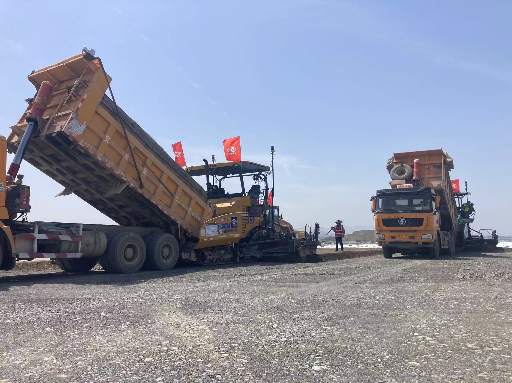 為保證攤鋪順利進行,項目部前期做好各項準備工作,在施工過程中,嚴格把控施工環(huán)節(jié),確保攤鋪施工銜接有序,高效優(yōu)質,一次成型,并使用mmGPS 3D攤鋪技術進行兩機聯(lián)鋪。