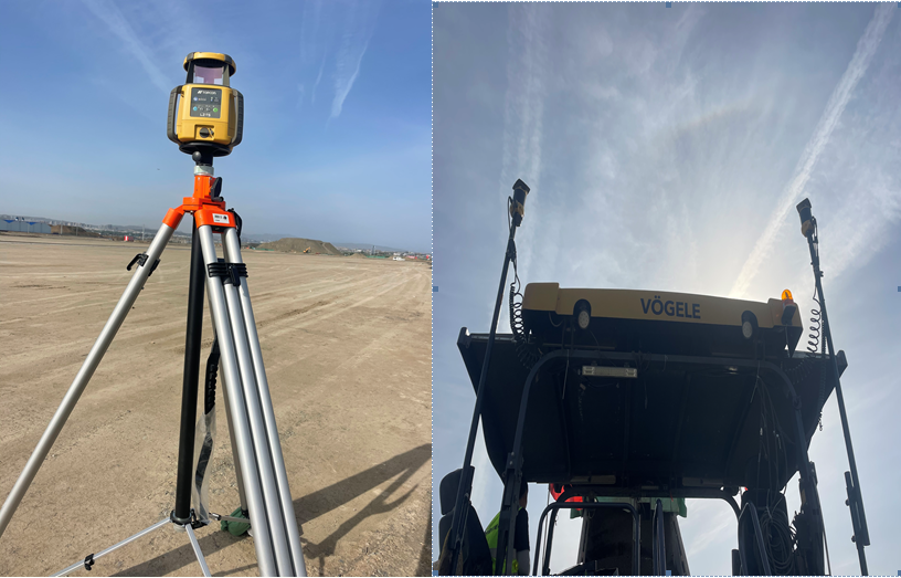 我司首次在烏魯木齊機場使用mmGPS 3D攤鋪技術,mmGPS 3D攤鋪技術是指通過衛(wèi)星全球導航定位系統(tǒng)和激光高精度測量系統(tǒng),立體控制攤鋪的高程精度和平面精度。該技術克服了常規(guī)掛鋼線施工時掛鋼線下垂、傳感器跳動等問題,同時減少了測量放樣的工作內(nèi)容,很好地控制了結構層厚度、高程及平整度,尤其在多機聯(lián)鋪作業(yè)方式下效果明顯,實現(xiàn)了“機械化換人、自動化減人”的理念,減少了人員投入的同時減少了材料的浪費,降低了項目的安全風險,產(chǎn)生了明顯的經(jīng)濟效益。